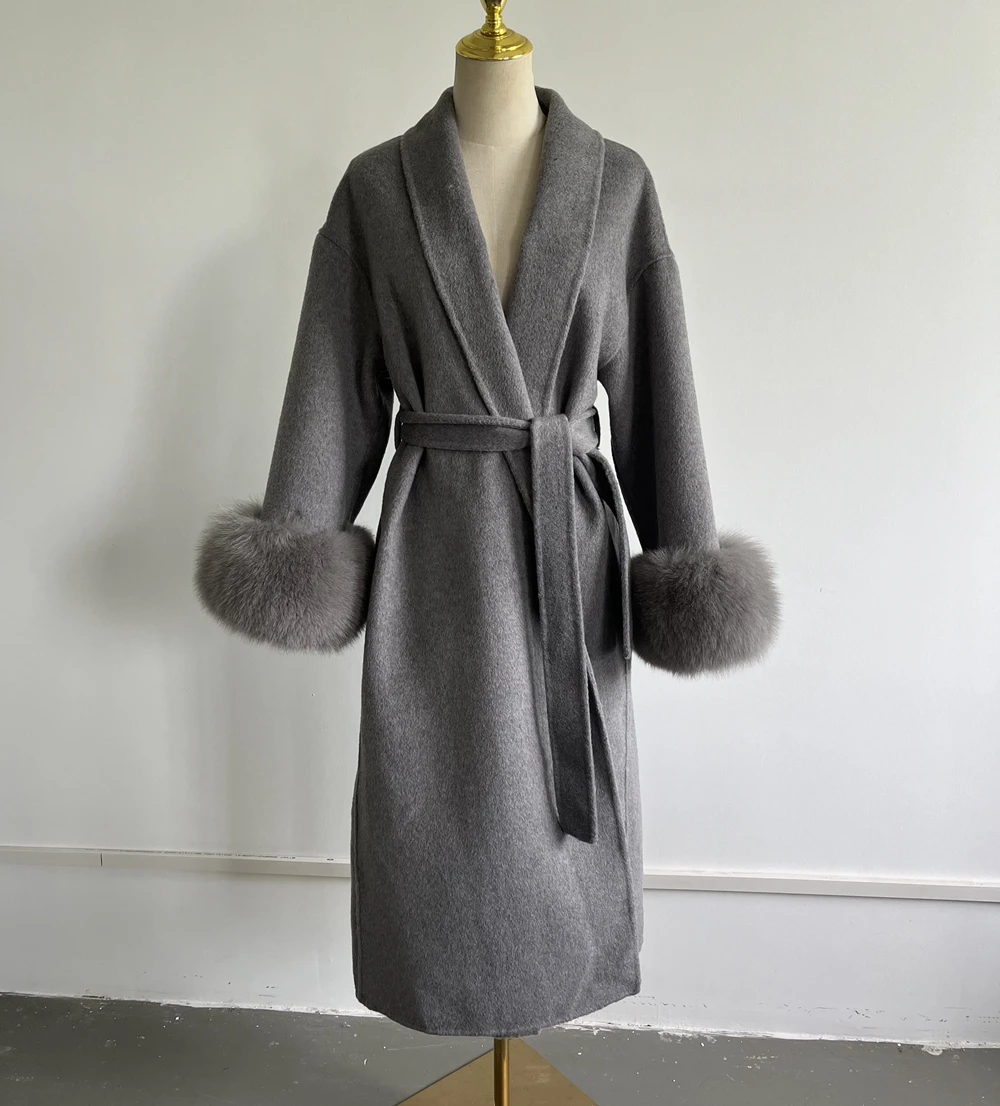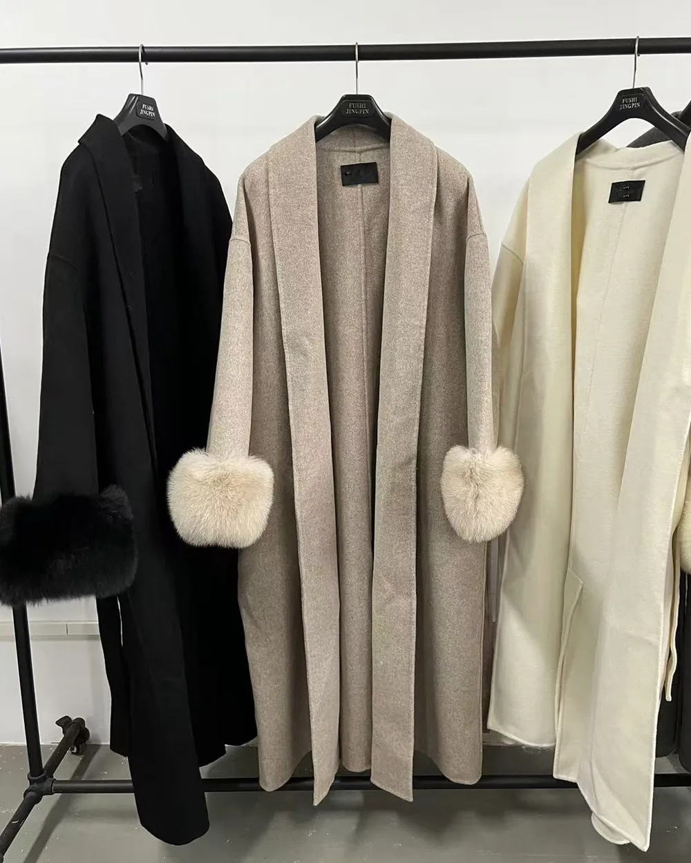 3025 Hot Selling Women's Casual Long Coat New Arrival QC24029 Made of Soft Cashmere Woolen Plain Dyed Nonwoven Fabric